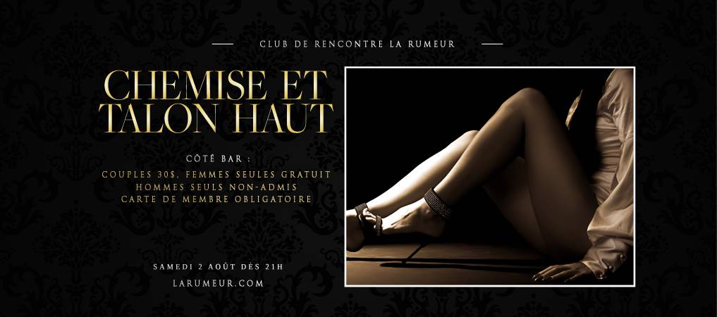 Vous avez le goût de vivre une soirée extraordinaire et chaude en sensualité tout en étant libre de vos gestes, joignez vous à nous au Club La Rumeur de Québec. Soirée pour couples et femmes seules. L’endroit idéal pour faire de belles rencontres, ou tout simplement venir vous amuser…