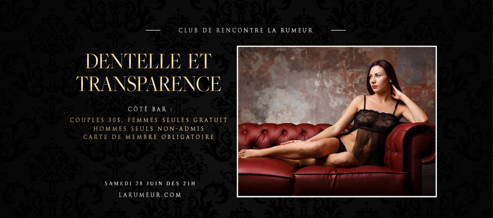 Vous avez le goût de vivre une soirée extraordinaire et chaude en sensualité tout en étant libre de vos gestes, joignez vous à nous au Club La Rumeur de Québec. Soirée pour couples et femmes seules. L’endroit idéal pour faire de belles rencontres, ou tout simplement venir vous amuser…